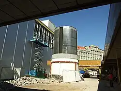 Zvláštností byla použitá stavební technologie suché montáže.[2] Pro styl high-tech styl bylo charakteristické zvýraznění některých technologických prvků: barevně natřená potrubí vzduchotechniky na stropech (ta však byla zakryta v roce 1992) a eskalátory v prosklené schodišťové hale (průhled byl zakryt při rekonstrukci roku 2009 a přilehlý prostor má být zastavěn).[2][9] Tyto prvky byly inspirované stavbou Centre Georges Pompidou v Paříži (1972–1977) od architektů Renza Piana a Richarda Rogerse, pražská stavba ale byla dokončena o dva roky dřív než její vzor, což jí dává celoevropský význam.[2]