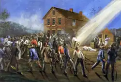 Mezi lety 1845–1927 byla součástí Obdarování také přísaha, která účastníky zavazovala modlit se k Bohu, aby pomstil krev proroků, což byl téměř jistě odkaz na vraždu bratrů Smithových, Josepha a Hyruma, v létě roku 1844. Existuje ale řada konfliktních svědectví, z nichž některá naznačovala, že přísaha zahrnovala také samotný akt pomsty, nebo že naopak neměla souvislost s americkým národem a Smithovými, ale odkazovala na obecnou zásadu a verše z Nového zákona.[15]