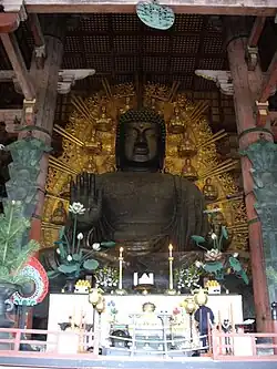 Buddhismus, který se na Japonské ostrovy dostal v 6. století n. l., dosáhl oficiálního uznání jako státní náboženství a za vlády císaře Šómu (724–749) došlo k jeho rozmachu. Císař Šómu nechal vystavět mnoho buddhistických chrámů a Buddhových soch a v roce 741 nařídil zařídit v každé provincii mužský a ženský klášter. V roce 752 nechal vztyčit v klášteře Tódaidži sochu Buddhy Vairóčany, která dnes patří k největším bronzovým sochám na světě.[1]