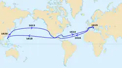 Během druhého desetiletí sedmnáctého století samuraj Cunenaga Hasekura navštívil Místokrálovství Nové Španělsko a některé evropské přístavy jako první japonský velvyslanec v Americe, ve Španělsku a v Itálii. Evropští panovníci odmítli uzavřít obchodní dohody, o které Hasekura usiloval, s ohledem na potlačování křesťanství v Japonsku.[12]