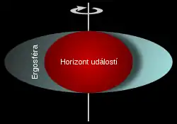 Ještě více pozoruhodné je, že existuje obecná sada zákonů známá jako termodynamika černých děr, která je analogická termodynamickým zákonům. Například podle druhého zákona termodynamiky černých děr plocha (povrch) horizontu událostí obecné černé díry je v čase neklesající, podobně jako entropie termodynamického systému. To omezuje energii, kterou lze získat klasickými prostředky z rotující černé díry (např. pomocí Penroseova procesu).[148] Existují silné důkazy, že zákony termodynamiky černé díry jsou ve skutečnosti podmnožinou zákonů termodynamiky a že povrch černé díry je úměrný její entropii.[149] To vede k úpravě původních zákonů termodynamiky černé díry: například když druhý zákon termodynamiky černé díry se stává součástí druhého zákona termodynamiky, je možné, že oblast černých děr klesá – dokud ostatní procesy zajistí, že celkově se entropie zvyšuje. Jako termodynamické objekty s nenulovou teplotou by měly černé díry vyzařovat tepelné záření. Poloklasické výpočty naznačují, že to skutečně dělají, přičemž povrchová hmotnost hraje roli teploty v Planckově zákonu. Toto záření je známé jako Hawkingovo záření (viz níže sekce kvantové teorie).[150]