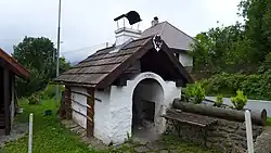 Novodobý dřevěný přístřešek umístěný v bezprostřední blízkosti objektu pece slouží pekařům v současné době jako příruční manipulační prostor.[2] Tento pomocný přístřešek je krytý sedlovou střechou s šindelovou krytinou a není památkově chráněn.[2]