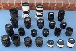 Fotografické objektivy se vyrábějí v široké škále ohniskových vzdáleností. Delší ohniskové vzdálenosti (teleobjektivy) jsou určeny pro fotografování vzdálených objektů (sportovní reportáže, zvířata v přírodě). Širokoúhlé objektivy s kratší ohniskovou vzdáleností jsou vhodné pro fotografování v malém prostoru nebo pro získání nezvyklé perspektivy nebo deformovaného obrazu (tzv. rybí oko). Existují i objektivy s proměnnou ohniskovou vzdáleností (zoom).