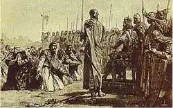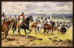 ![]() Čechové před Milánem roku 1158 (ilustrace Josefa Mathausera ke knize „Historie českého národa v obrazech“ – 1909) | |||