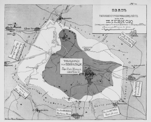 - ↑ a b c d PANTHAKI, Neville G. Siege of Plevna. In: SANDLER, Stanley. Ground Warfare: An International Encyclopedia. [s.l.]: ABC-CLIO, 2002. Dostupné online. ISBN 9781576073445. Vol. II: H-Q. S. 690. (anglicky)