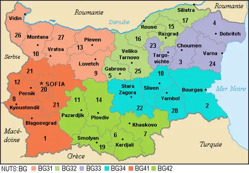 | Oblast | bulharsky | správní středisko | Počet obštin |