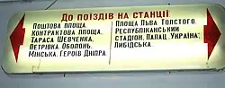 - ↑ Kyivans voted to de-Sovietize two metro station names, following 200 renamed streets. Euromaidan press [online]. 2023-01-13 [cit. 2023-01-14]. Dostupné online. (anglicky)