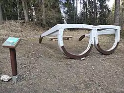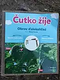 Na obrově stezce jsou informační panely s nápisem „Čutko žije“ a tato dřevěná díla:[2][3]