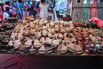 - sandály – tuhá plochá podešev ve tvaru chodidla, přivazovaná řemínky