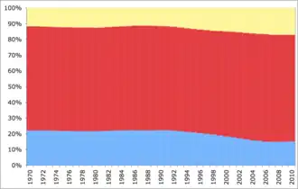 | Jiní | 11 467 | 1,0 | 4 266 | 0,4 | 6 116 | 0,5 | 6 883 | 0,5 | 9 042 | 0,6 | 13 798 | 0,9 | 17 0297 | 1,2 | 11 887 | 0,9 | 19 448 | 1,5 |