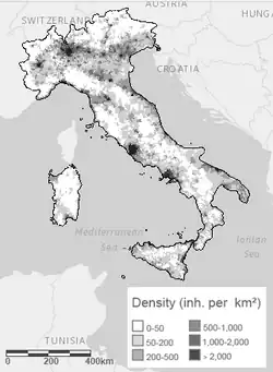 Populace Itálie se během 20. století téměř zdvojnásobila, ale růst byl extrémně nevyvážený kvůli vysoké vnitřní migraci ze zemědělského jihu na průmyslový sever, což byl fenomén způsobený italským hospodářským zázrakem v padesátých a šedesátých letech. Navíc po staletích emigrace se Itálie od osmdesátých let stala poprvé ve své moderní historii výrazným cílem imigrace. Podle italské vlády bylo v lednu 2014 v Itálii 4 922 085 cizinců.[2]