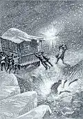 Knihu Oceánem na kře ledové ilustroval George Roux.