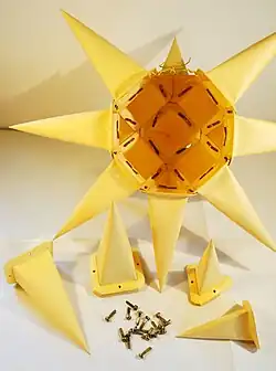 Základ hvězdy tvoří rombokubooktaedr, který má 26 stěn, z nichž 18 jsou čtverce a 8 rovnostranné trojúhelníky. Ten není vidět, jelikož je k němu připevněno 26 paprsků, 18 se čtvercovými a 8 s trojúhelníkovými hroty, které bývají o něco kratší. Nahoře na hvězdě bývá háček na zavěšení či je tudy dráty přivedena elektřina, jelikož uvnitř hvězdy je zdroj světla (světelná dioda, dříve žárovka). Horní paprsek proto někdy chybí.