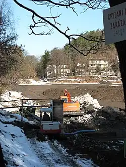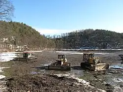 Buldozery na odbahnění rybníka Propast, Hradec (Stříbrná Skalice)