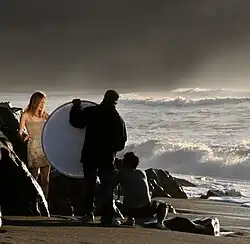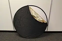 Reflektory mohou být také použity ke zvětšení velikosti hlavního světelného zdroje, kterému může (nebo nemusí) ponechat přímou cestu na scénu. Změnou vzdálenosti desky reflektoru od zdroje světla se mění efektivní velikost světla.[3]