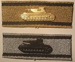Zlatá verze odznaku vypadala obdobně až na menší úpravy. Stuha byla vyrobena ze zlatě zbarveného silonu nebo ze zlatého drátku a raná verze vyznamenání zahrnovala lehký stříbrný nátěr na miniatuře tanku. Později obsahovala stříbrná verze vyznamenání počerněný tank.