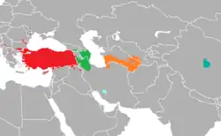 - ázerbájdžánská – ázerbájdžánština (severní a jižní varianta), jazyk íránských Turkmenů, kaškajština a afšarština