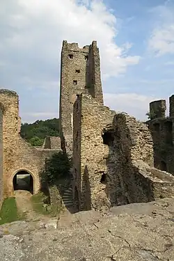 - ↑ DURDÍK, Tomáš. Předsunuté bašty českého vrcholně středověkého hradu. Příspěvek k povrchovému průzkumu. In: Historická geografie. Praha: Komise pro historickou geografii při Ústavu československých a světových dějin ČSAV, 1973. Svazek 10. Sborník příspěvků k šedesátinám univ. prof. MUDr. Ervína Černého. S. 140.
