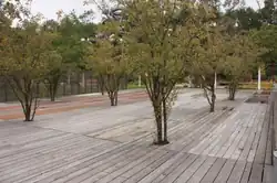 Pokud jsou terasy nezbytné, jsou upraveny tak, že jejich linie tvoří část hlavního rámce. Živé ploty zde bývají přísně zastřižené, nacházejí se zde pravidelně upravené květinové záhony (pokud nějaké) a další doplňky. [1]