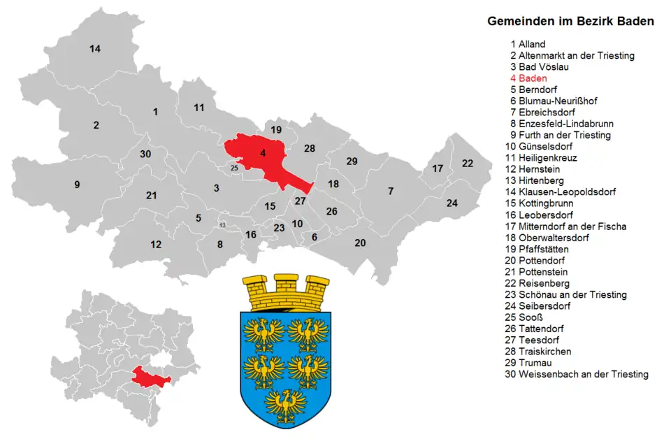 V tomto článku byl použit překlad textu z článku Bezirk Baden (Österreich) na německé Wikipedii.