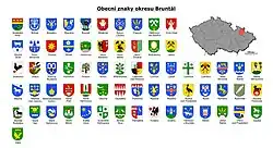 Andělská Hora (Pustá Rudná) • Bílčice (Májůvka) • Bohušov (Dolní Povelice • Karlov • Ostrá Hora) • Brantice (Radim) • Bruntál (Karlovec) • Břidličná (Albrechtice u Rýmařova • Vajglov) • Býkov-Láryšov (Býkov • Láryšov) • Čaková • Dětřichov nad Bystřicí (Krahulčí) • Dívčí Hrad • Dlouhá Stráň • Dolní Moravice (Horní Moravice • Nová Ves) • Dvorce (Rejchartice) • Heřmanovice • Hlinka • Holčovice (Dlouhá Ves • Hejnov • Holčovice • Jelení • Komora • Spálené) • Horní Benešov (Luhy) • Horní Město (Dobřečov • Horní Město • Rešov • Skály • Stříbrné Hory) • Horní Životice • Hošťálkovy (Křížová • Staré Purkartice • Vraclávek) • Janov • Jindřichov (Arnultovice) • Jiříkov (Kněžpole • Křížov • Sovinec • Těchanov) • Karlova Studánka • Karlovice (Zadní Ves) • Krasov • Krnov (Krásné Loučky • Pod Bezručovým vrchem • Pod Cvilínem) • Křišťanovice • Leskovec nad Moravicí (Slezská Harta) • Lichnov (Dubnice) • Liptaň (Bučávka • Horní Povelice) • Lomnice (Tylov) • Ludvíkov • Malá Morávka (Karlov pod Pradědem) • Malá Štáhle • Město Albrechtice (Burkvíz • Česká Ves • Dlouhá Voda • Hynčice • Linhartovy • Město Albrechtice • Opavice • Piskořov • Valštejn • Žáry) • Mezina • Milotice nad Opavou • Moravskoslezský Kočov (Moravský Kočov • Slezský Kočov) • Nová Pláň • Nové Heřminovy (Kunov) • Oborná • Osoblaha • Petrovice • Razová • Roudno (Volárna) • Rudná pod Pradědem (Nová Rudná • Stará Rudná) • Rusín (Hrozová • Matějovice) • Rýmařov (Edrovice • Harrachov • Jamartice • Janovice • Ondřejov • Rýmařov • Stránské) • Ryžoviště • Slezské Pavlovice • Slezské Rudoltice (Amalín • Koberno • Víno) • Stará Ves (Žďárský Potok) • Staré Heřminovy • Staré Město (Nová Véska) • Světlá Hora (Dětřichovice • Podlesí • Stará Voda • Suchá Rudná • Světlá) • Svobodné Heřmanice • Široká Niva (Pocheň • Skrbovice) • Třemešná (Damašek • Rudíkovy) • Tvrdkov (Mirotínek • Ruda) • Úvalno • Václavov u Bruntálu (Dolní Václavov • Horní Václavov) • Valšov • Velká Štáhle • Vrbno pod Pradědem (Bílý Potok • Mnichov • Vidly • Železná) • Vysoká (Bartultovice • Pitárné) • Zátor (Loučky)
