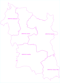Albrechtice • Bohumín (Nový Bohumín • Pudlov • Skřečoň • Starý Bohumín • Šunychl • Vrbice • Záblatí) • Český Těšín (Dolní Žukov • Horní Žukov • Koňákov • Mistřovice • Mosty • Stanislavice) • Dětmarovice (Koukolná) • Dolní Lutyně (Věřňovice) • Doubrava • Havířov (Bludovice • Dolní Datyně • Dolní Suchá • Město • Podlesí • Prostřední Suchá • Šumbark • Životice) • Horní Bludovice (Prostřední Bludovice) • Horní Suchá • Chotěbuz • Karviná (Doly • Fryštát • Hranice • Lázně Darkov • Louky • Mizerov • Nové Město • Ráj • Staré Město) • Orlová (Lazy • Lutyně • Město • Poruba) • Petrovice u Karviné (Dolní Marklovice • Prstná • Závada) • Petřvald • Rychvald • Stonava • Těrlicko (Dolní Těrlicko • Horní Těrlicko • Hradiště)