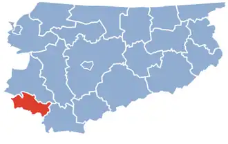| Podřízené celky | Gminy: Městské (1) Městsko-vesnické (0) Vesnické (4) |