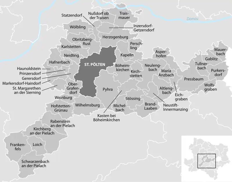 Obrázky, zvuky či videa k tématu Okres St. Pölten na Wikimedia Commons - Oficiální stránky