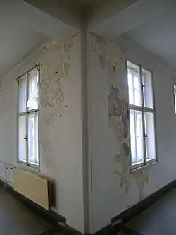 Zdevastovaný vězeňský dvůr vedle severního křídla