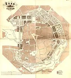 ![]() Letecký pohled historické jádro Brna ohraničené Okružní třídou | |||
