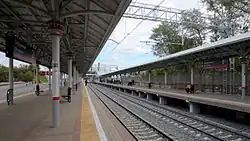 Stanice disponuje dvěma nástupišti, bočním a ostrovním. U bočního nástupiště zastavují vlaky jedoucí ve směru hodinových ručiček, na vnitřní straně ostrovního nástupiště zastavují vlaky, které jedou opačným směrem. Vestibul, který je laděn do bílé barvy, umožňuje skrz turnikety projít na vnější nástupiště a je propojen s nadchodem nad tratí, díky kterému se lze dostat na ostrovní nástupiště. Umístění turniketů umožňuje tento nadchod bezplatně použít pro přechod mezi Staniční ulicí a Signálným projezdem.