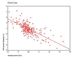 Výše uvedená formulace v praxi naráží na nemožnost změření a , které lze jen odhadnout. Proto se používá vyjádření, které navzájem porovnává změny produktu se změnami míry nezaměstnanosti:
