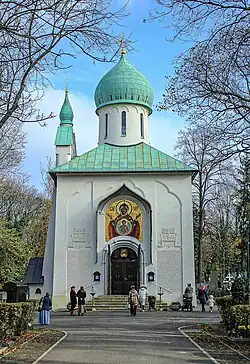 Jedna část Olšanských hřbitovů je vyhrazena pro pravoslavné, jejíž součástí je také nevelký chrám Zesnutí přesvaté Bohorodice, kde se konají pohřební obřady a vzpomínky za zesnulé (panychida), ale i běžné nedělní a ostatní bohoslužby, kterých se účastní převážně rusky hovořící věřící.