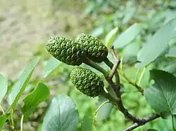 ![]() Mladá olše srdčitá (Alnus cordata) | |