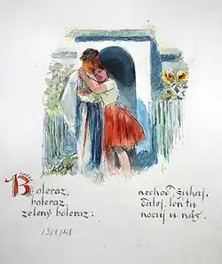 Už prof. Pirner v něm na Akademii poznal schopného ilustrátora, podněcoval jej k této činnosti a za příklad mu dával kresby Josefa a Quido Mánesa nebo Karla Purkyně.[2] Hlavním vzorem mu však zpočátku byl Mikuláš Aleš, i když později stylově soupeřil v knižní ilustraci s Adolfem Kašparem, který byl jeho dlouholetý přítel.