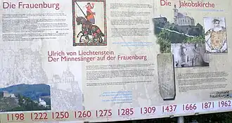 - ↑ LINDEN, Sandra; YOUNG, Christopher John. Ulrich von Liechtenstein: Leben - Zeit - Werk - Forschung. [s.l.]: Walter de Gruyter 599 s. Dostupné online. ISBN 9783110241099. (německy)