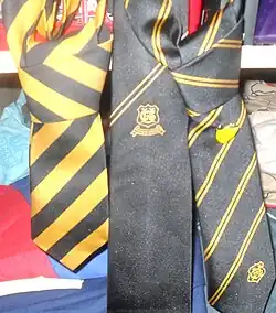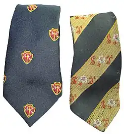 Old school tie (školní kravata) je výraz, který má podobný přenesený význam (tie anglicky kravata, ale také společenská vazba) jako old boy network, jen se tito absolventi projevují nošením školních kravat, které zastupují svými barvami jejich bývalou školu (či kolej). Jde o jistý skrytý signál, že tito lidé chodili na určité (prestižní) školy.[12] Kravaty dostávají absolventi a v Británii jde převážně o tradici spjatou se soukromými školami. Tento trend byl výraznější spíše v minulosti, nicméně tradice školních, univerzitních či kolejních barev stále přetrvává, ať již ve formě kravat, či různých jiných dostupných doplňků (motýlků, šál, ponožek atp.).