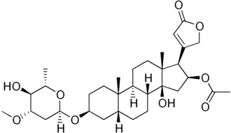 | Systematický název | 16β-(acetyloxy)-3β-[(2,6-dideoxy-3-O-methyl-α-ʟ-arabino-hexopyranosyl)oxy]-14-hydroxy-5β-kard-20(22)-enolid |