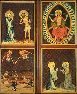 Na dalších obrazech zavřeného oltáře je Noli me tangere, Kristus Vládce, Vzkříšení mrtvých a Modlitba Panny Marie a apoštola sv. Jana.