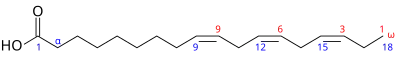 - ↑ GELEIJNSE, Johanna M.; DE GOEDE, Janette; BROUWER, Ingeborg A. Alpha-Linolenic Acid: Is It Essential to Cardiovascular Health?. S. 359–367. Curr Atheroscler Rep. [online]. Springer, 3. 9. 2010 [cit. 2023-09-05]. Roč. 2010, čís. 12(6), s. 359–367. Dostupné online. doi:10.1007/s11883-010-0137-0.