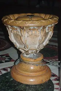 Středověký omfalos je v chrámě Božího hrobu v Jeruzalémě. Snad navazuje na talmudskou tradici, kde se vyskytuje myšlenka, že Jeruzalém je střed světa.[1]