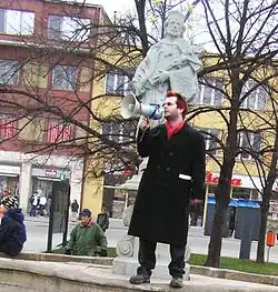 ![]() Ondřej Slačálek na manifestaci na podporu uprchlíků v Brně (2015) | |