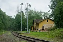 Někdejší nádražní budova je uzavřená a zdevastovaná, cestující se mohou v případě nepříznivého počasí skrýt pod zastřešenou venkovní částí budovy.[1]