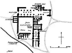Nejprve byl postaven kostel, zejména jeho východní část, kde se nacházel hlavní oltář. Poté byl postaven jižní transept a východní část křížové chodby. Východní dveře kostela a vchod do kapitulní síně jsou typickým příkladem architektury konce 12. století. Poté byl dokončen chór a kaple v severním transeptu - vše ve stylu počátku 13. století.[6]