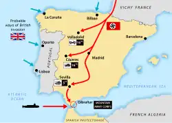 Plán počítal s vojenskou i logistickou podporou Španelska, naopak Itálie se této operace účastnit neměla.[1] Führer Adolf Hitler a generalissimo Francisco Franco měli mnohem méně společné, než by se dalo předpokládat - krom velmi nízkého mínění jeden o druhém a přestože obě země byly od skončení občanské války teoreticky spojenci, míra jejich spolupráce byla malá. Franco nebyl příliš ideální partner. Na jednu stranu chtěl z Hitlerovy války profitovat (na úkor oslabené Francie především), ovšem jak Hitler správně postřehl, jeho španělský kolega neměl zájem podílet se na těžké práci, což ovšem při vyčerpaném stavu španělské ekonomiky po ničivé válce bylo docela pochopitelné.