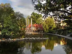 - Hradní rybník (Staw Zamkowy) – pozůstatek hradního příkopu proměněný v parkový areál s Ledovým domkem (Domek Lodowy) z roku 1909 a zpívající fontánou instalovanou v roce 2013;