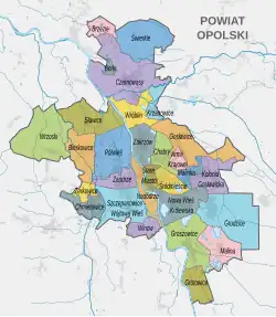- ↑ Nowy podział administracyjny Opola na dzielnice [online]. polska-org.pl, 2019-07-31 [cit. 2021-04-20]. Dostupné online. (polsky)