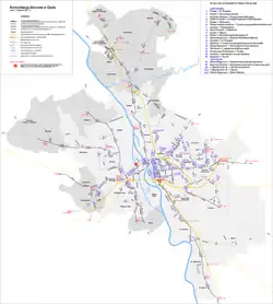 Městskou autobusovou dopravu zajišťuje dopravní podnik MZK Opole na 13 denních městských, 3 denních příměstských a 3 nočních linkách (stav k dubnu 2021).[38] Plány na výstavbu tramvajové sítě nebyly nikdy uskutečněny. Regionální dopravu provozuje PKS Opole, do města jezdí též spoje jiných PKS společností (PKS Strzelce Opolskie, PKS Kluczbork, PKS Głubczyce, PKS Nysa) a soukromí dopravci. V roce 2020 začala přestavba autobusového stanoviště vedle hlavního vlakového nádraží na moderní Centrum Przesiadkowe Opole Główne (Přestupní centrum Opolí hlavní nádraží).[39]
