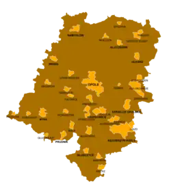 | Podřízené celky | Okresy • městské: 1 • venkovské: 11 Gminy • městské: 3 • městsko-vesnické: 33 • vesnické:35 |