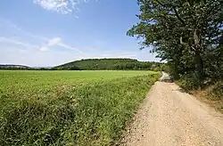 ![]() Pohled na vrch Hradiště z mostu Závodu míru, vlevo ústí Břežanské údolí | |